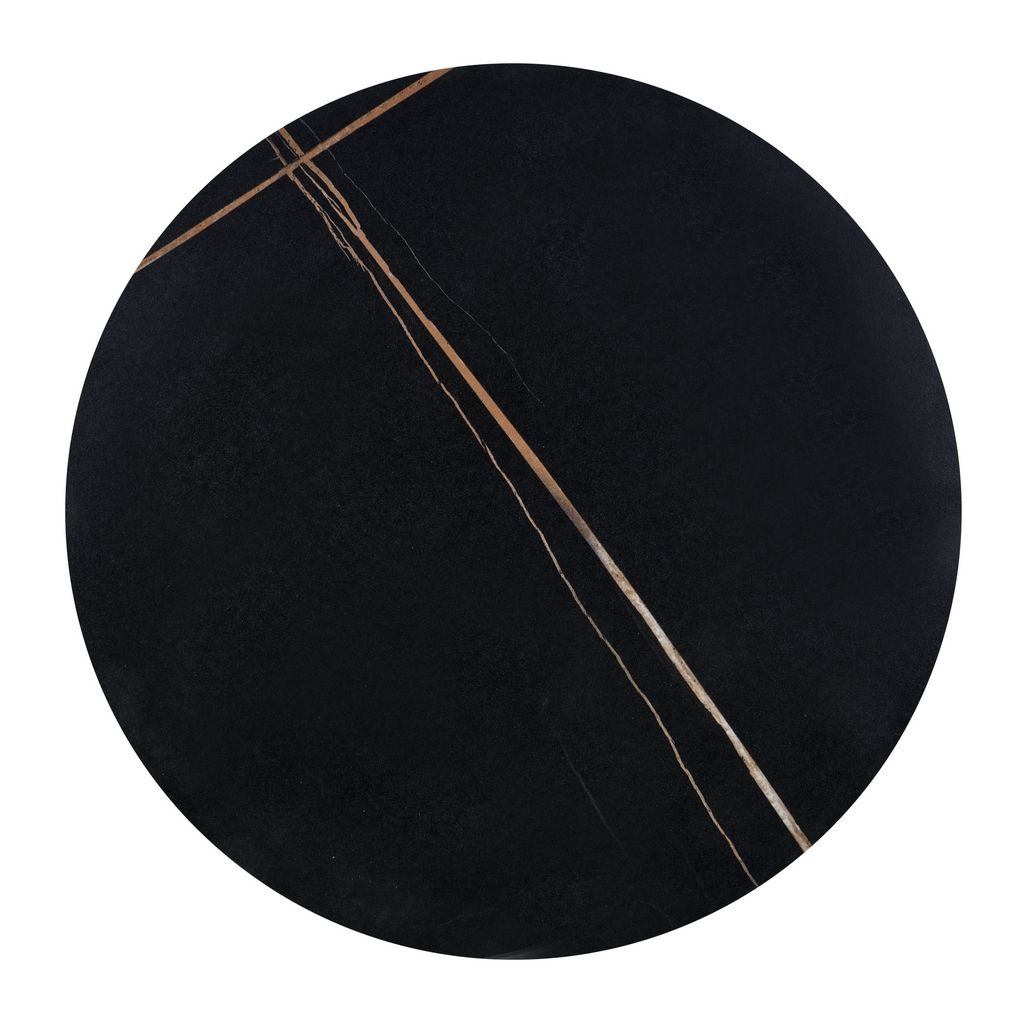 Kruhová deska s průměrem 50 cm je z keramiky, jejíž hladký vzhled si zamilujete. Ozvláštňuje ji žíhaná textura.