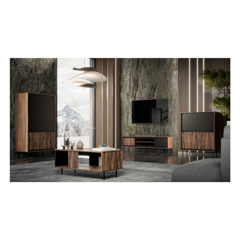 Nábytková řada Stuga si vás získá svou kombinací rustikálního vzhledu s moderní elegancí. Klíčovým slovem je zde kontrast – jednak mezi dezénem ořechu, který navozuje útulnou atmosféru, a černým lakem, jednak mezi hladkými plochami a hravou "vlnitostí" některých dveří. To vše dává kolekci Stuga nezaměnitelný šmrnc.