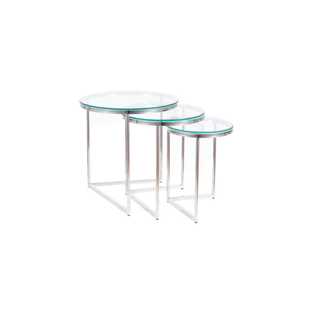 Kovová podnož je pochromovaná, každému stolku dodává lesk, který se často využívá v moderních interiérech. Stolky setu můžou stát společně, ale také zvlášť. Propůjčují vám tak variabilitu v užití.