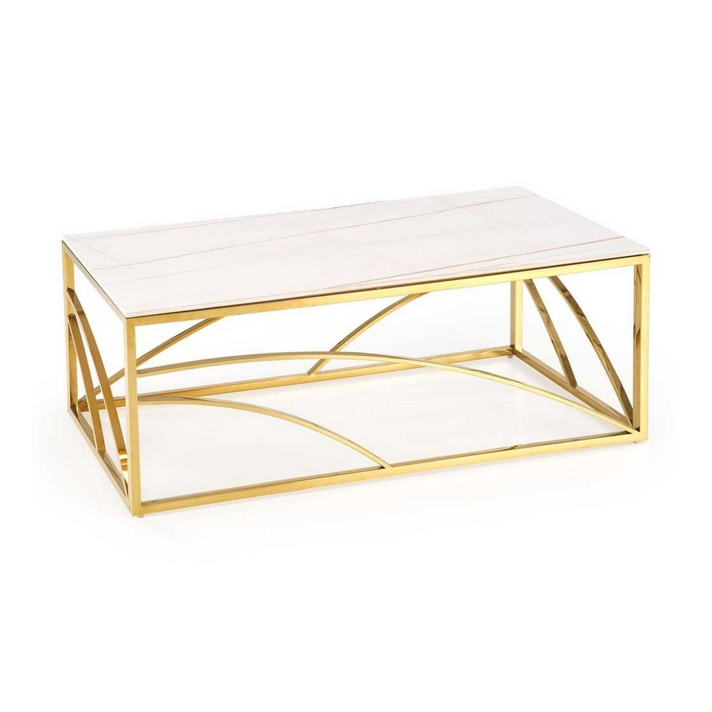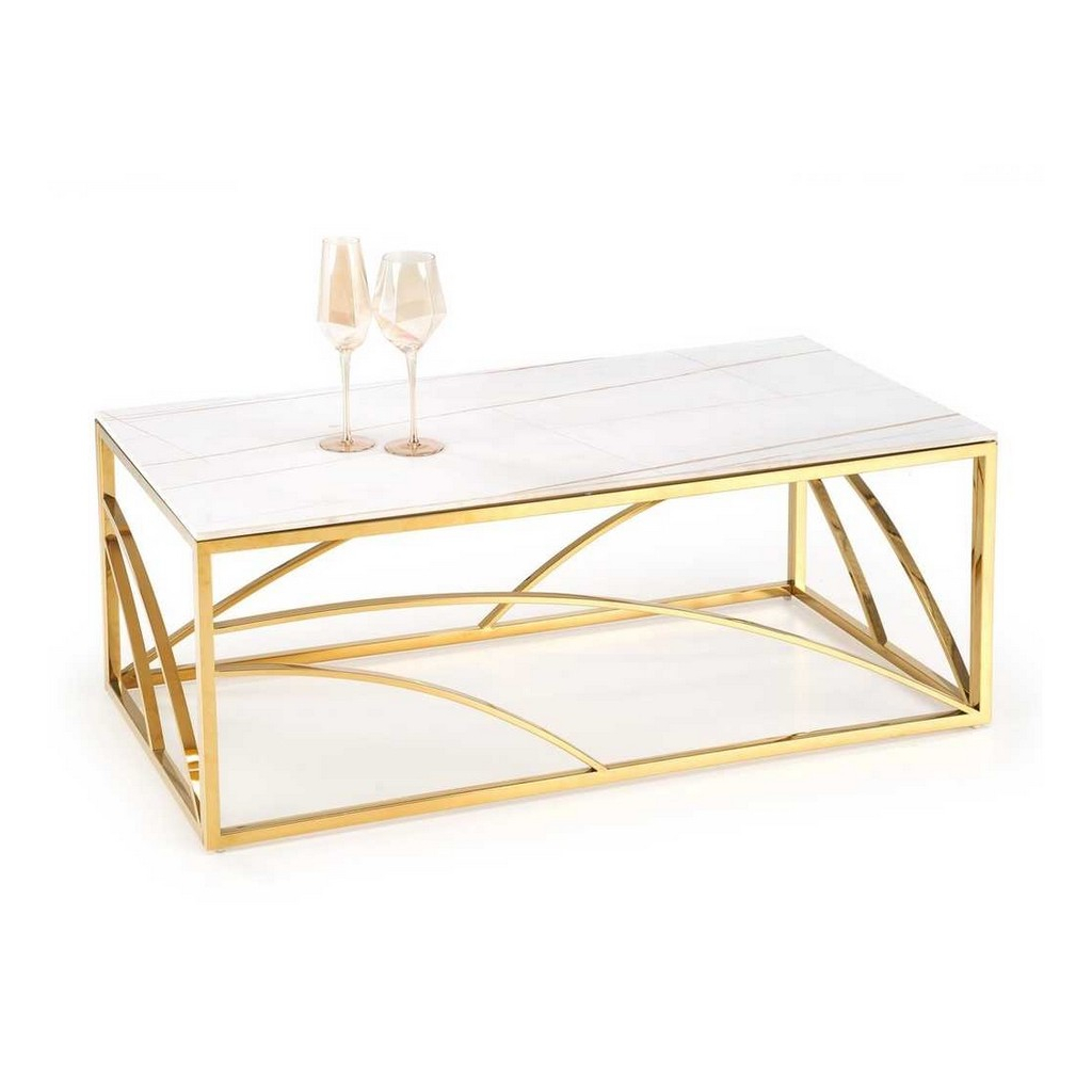 Podnož stolu je vyrobená z práškované oceli, což zajišťuje nejen pevnost a stabilitu, ale také ochranu proti poškození a korozi. Zlatý lesklý povrch podtrhuje honosný vzhled celého kusu, čímž se stůl skvěle hodí do moderních a elegantních interiérů.