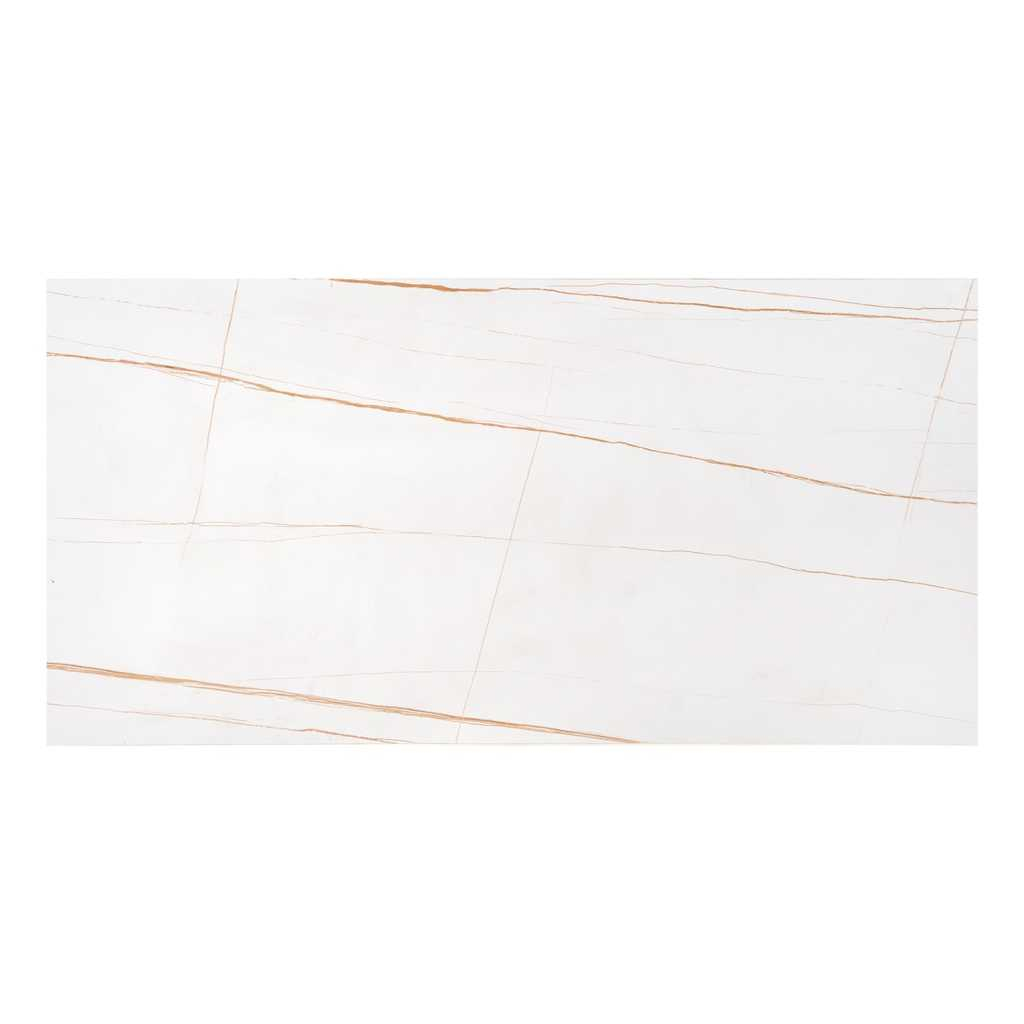 Obdélníková deska stolu je vyrobena ze sintru, materiálu, který nabízí vysokou odolnost a praktičnost. Povrch desky věrně imituje mramor.