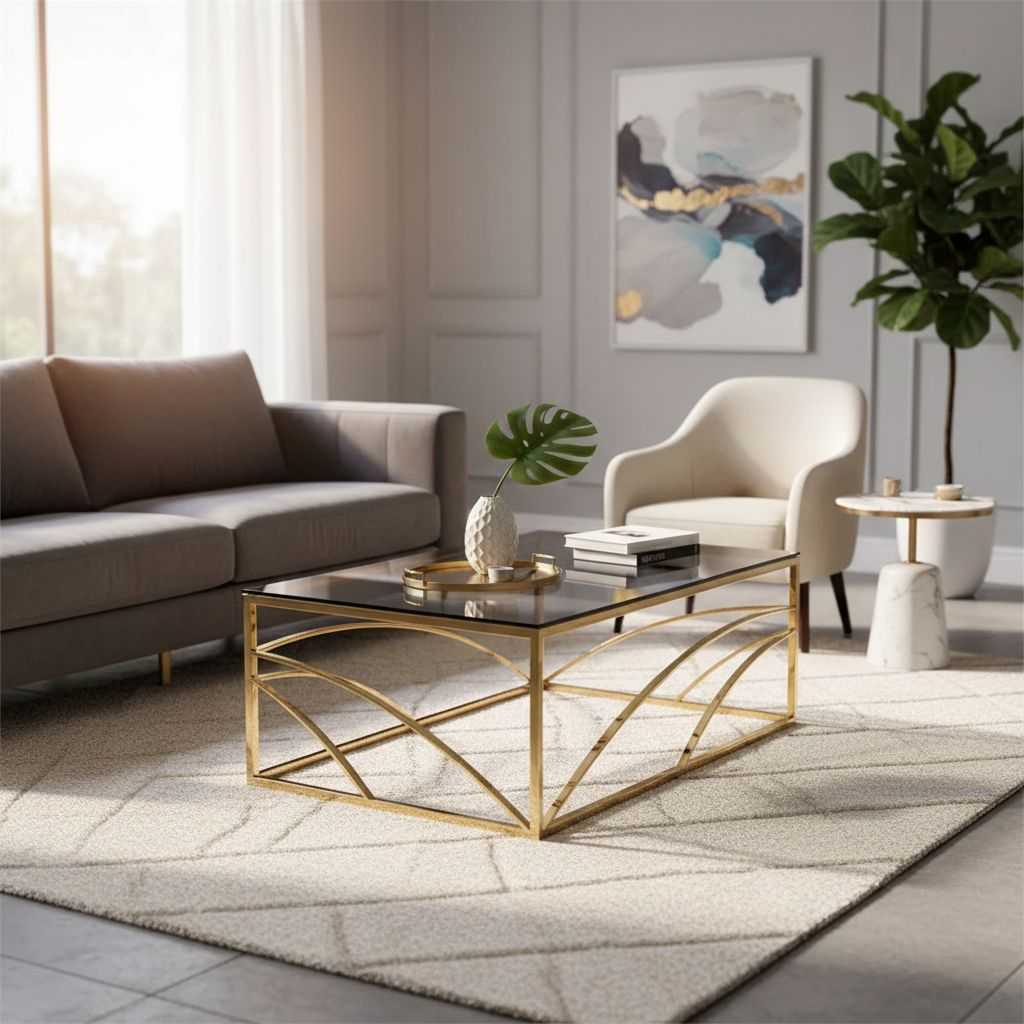 Konferenční stolek Universe obdélníkový, čirá / zlatá