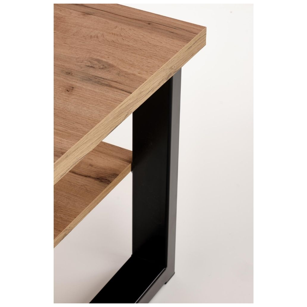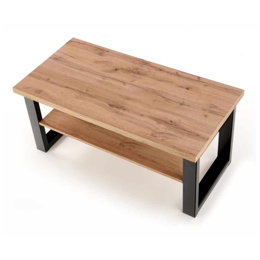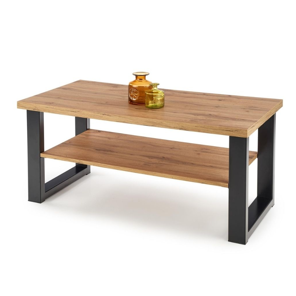 Konferenční stolek má zajímavý, ale praktický design. Nožky stolku jsou vyrobeny z pevné práškované oceli v černé barvě. Desky stolku pak z lamina s ABS hranami v barevném provedení dub wotan.