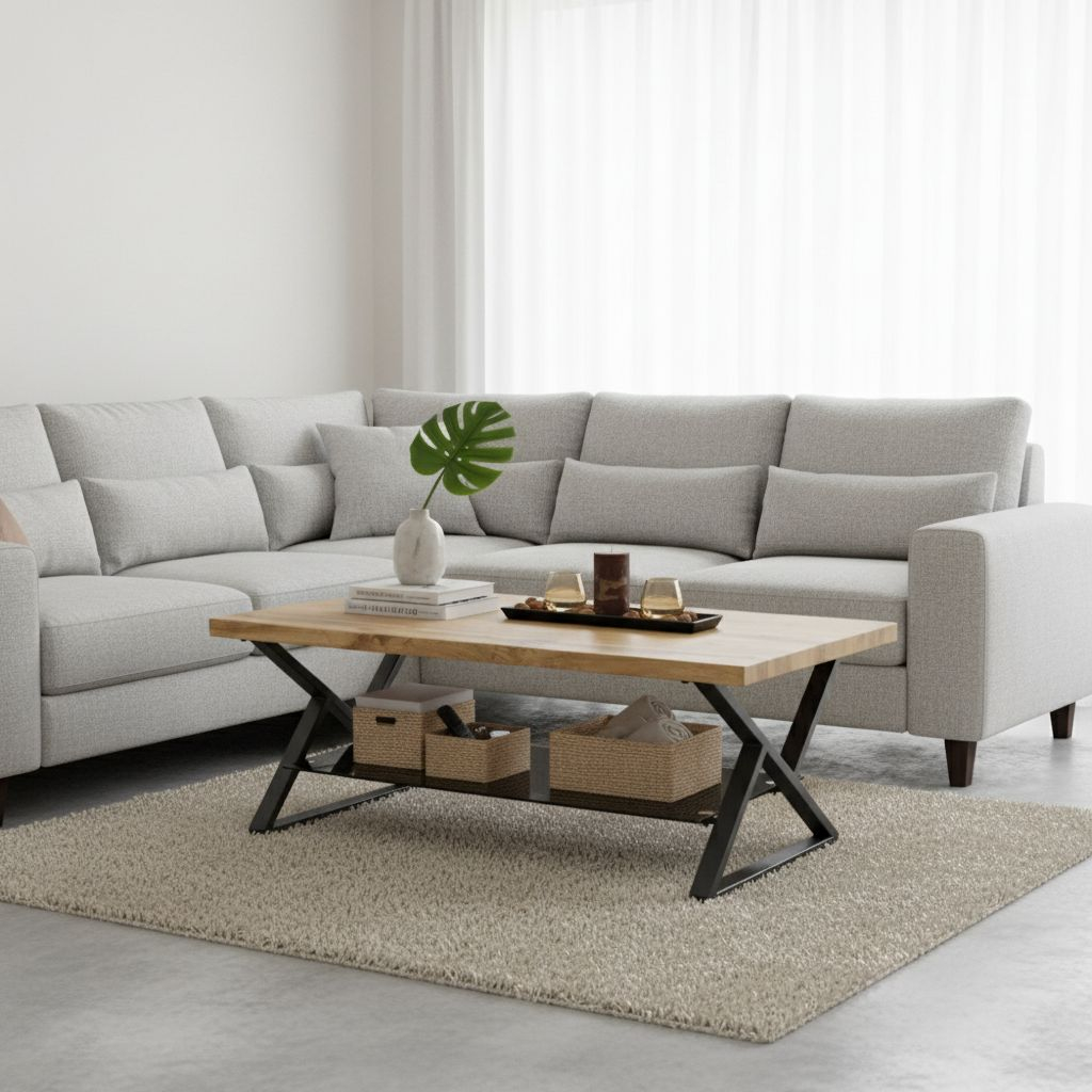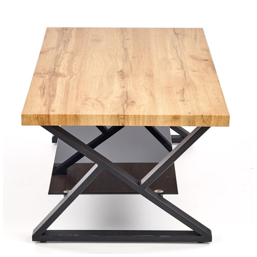 Konferenční stolek vhodný do jakéhokoliv obývacího pokoje nebo pracovny. Díky svému provedení je ideální do větších prostor a také pro milovníky přírodních dekorů a materiálů. Díky spodní odkládací desce nabízí dostatek odkládacího prostoru.
