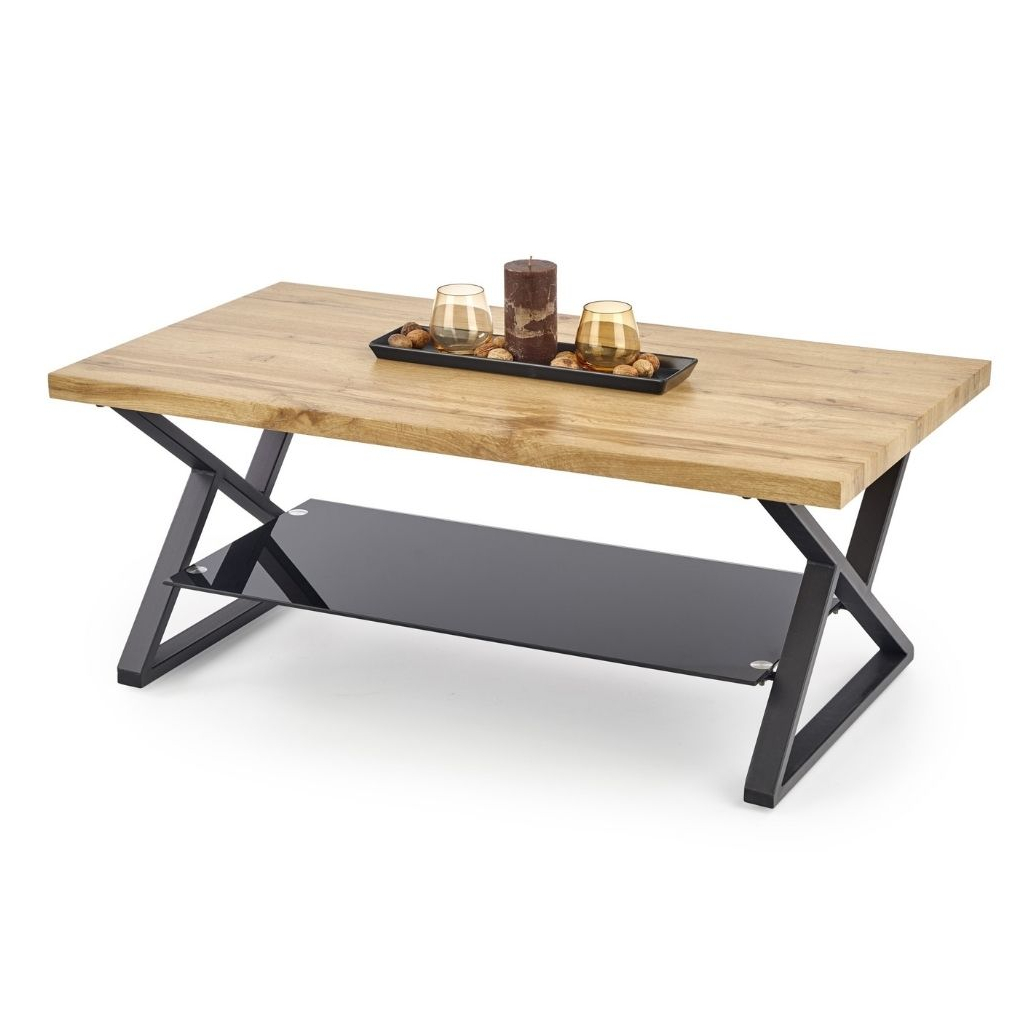Konferenční stolek Xena obdélníkový, přírodní dřevo / černá