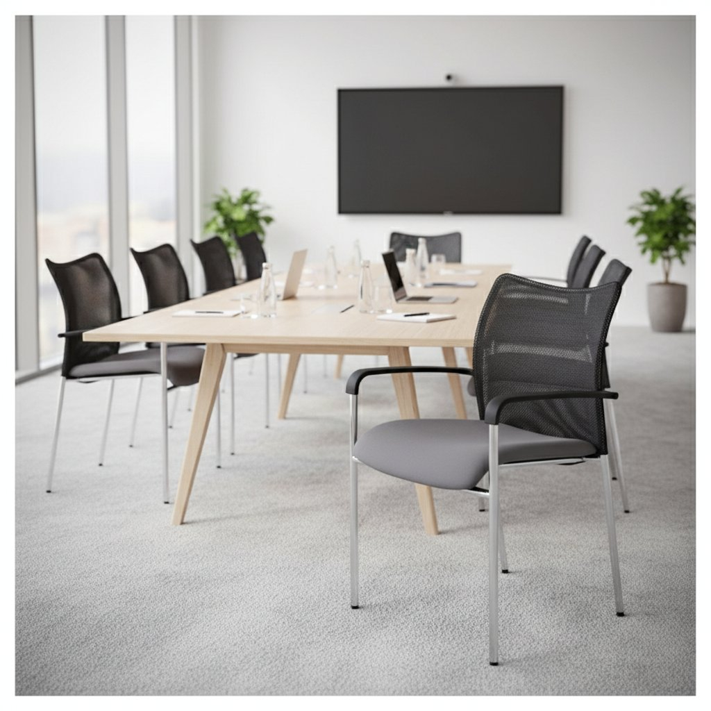 Konferenční židle John můžete stohovat na sebe po 5 kusech, čímž si ušetříte prostor během jejich skladování. Nosnost židle je 120 kg.