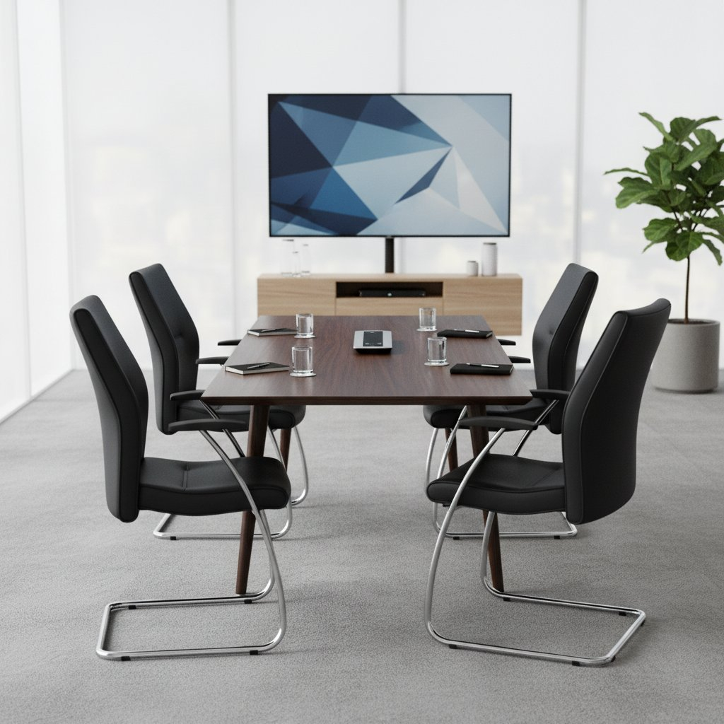 Nohy jsou u země ukončeny plastovými nástavci proti poškození podlahy. Nosnost konferenční židle Lei je 120 kg a dodáváme ji v černé barvě.
