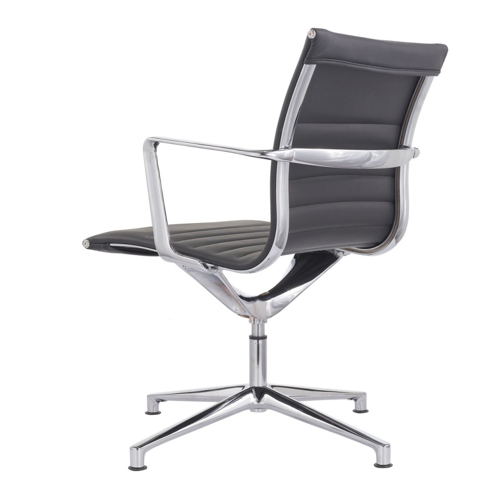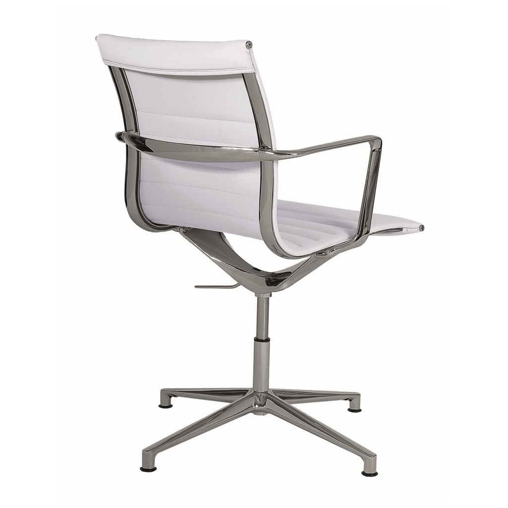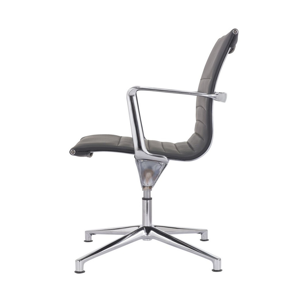 Konferenční židle Sophia Conference vás nadchne svým reprezentativním designem, zásluhou kterého ozdobí každou zasedací a jednací místnost i kanceláře. Skládá se z pevné kovové konstrukce z leštěného hliníku, sedáku a opěráku potaženého exkluzivním potahem z pravé kůže a bytelného kříže opatřeného kluzáky. Výšku této konferenční židle můžete regulovat pomocí páky umístěné pod sedákem. Zároveň umožňuje otáčení díky otočnému mechanismu. Navíc disponuje pevnými područkami, které tvoří oporu pro vaše lokty. Maximální nosnost židle je 130 kg.
