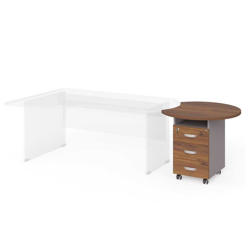 Se svou výškou 74 cm se skvěle napojí na desku pracovního stolu a rozšíří tak pracovní plochu. Navíc získáte další úložný prostor pro věci, které potřebujete mít vždy při ruce. Deska tohoto kontejneru má kruhový tvar s ideálním výřezem pro stůl.
