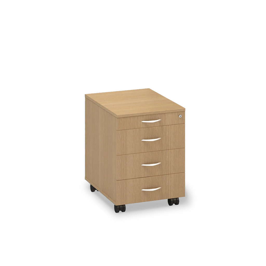 Pojízdný kontejner ProOffice je vybaven čtyřmi zásuvkami s nosností 15 kg. Disponuje také elegantními kovovými úchytkami a centrálním zamykáním, díky kterému stačí uzamknout zámek umístěný na horní zásuvce a zamknou se všechny zásuvky najednou.