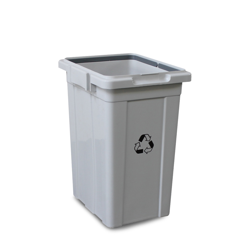 Koš na tříděný odpad bez víka s objemem 33 l najde své uplatnění především ve firmách, dílnách a skladech. Jeho konstrukce je vyrobená z šedého tvrzeného plastu. Pomocí bočních háků můžete vytvořit z více kusů celý blok košů. Na jednom místě tak budete mít nádoby na likvidaci hned několika typů odpadu.