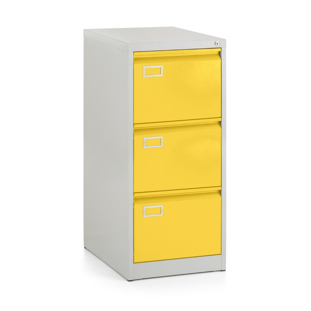Kovová kartotéka A4 - 3 zásuvky, 45,5 x 62 x 101,5 cm, cylindrický zámek, žlutá - ral 1023