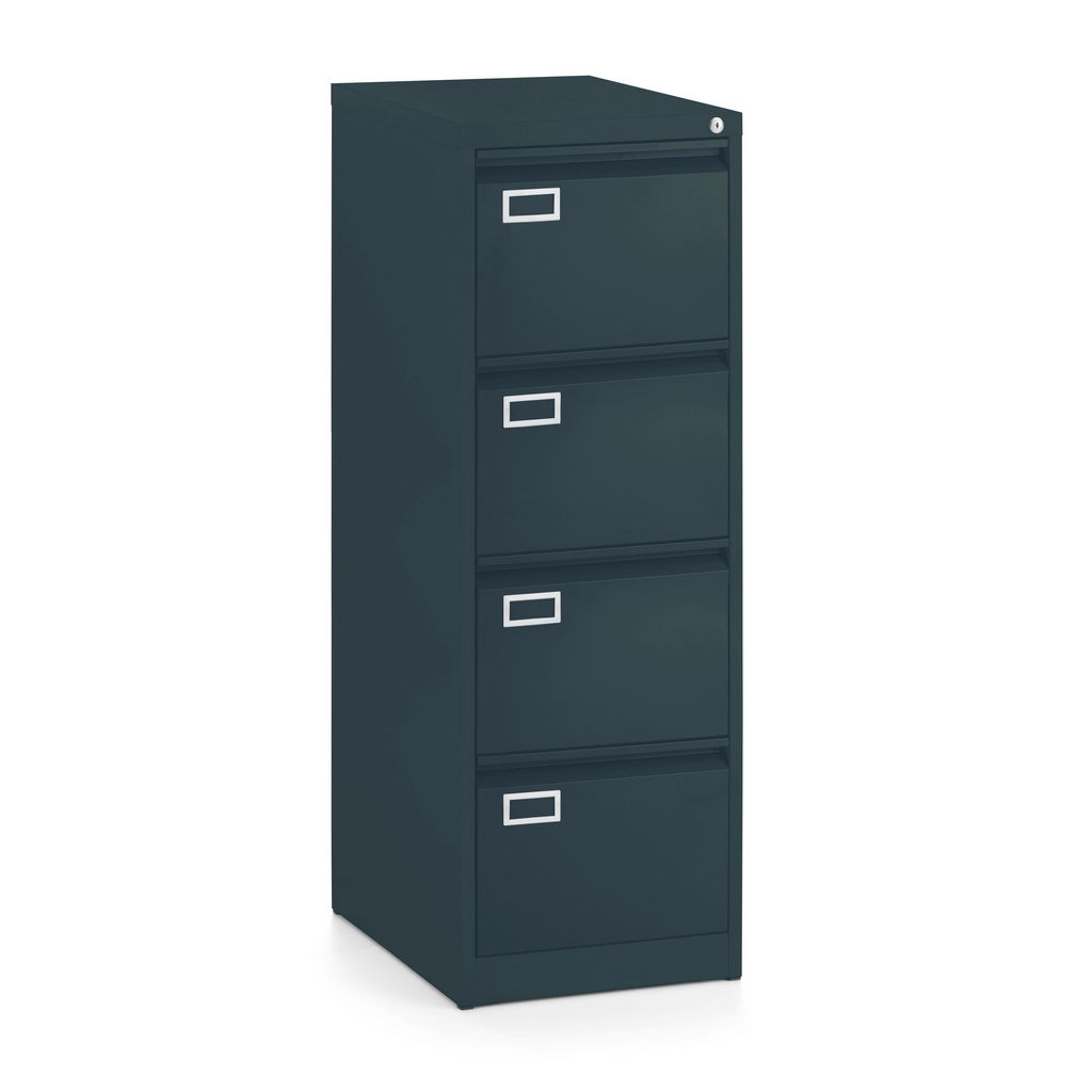 Kovová kartotéka A4 - 4 zásuvky, 45,5 x 62 x 132 cm, cylindrický zámek, antracitová - ral 7016