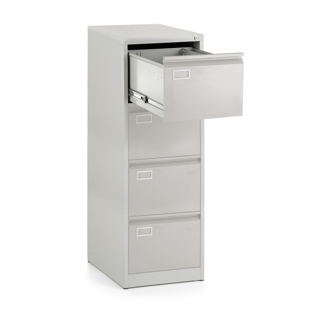 Kovová kartotéka vám poskytne úložný prostor ve formě 4 zásuvek, které jsou přizpůsobeny pro archivaci dokumentů ve formátu A4. Každá ze zásuvek je stavěna až pro 40 kg obsahu, se kterým můžete pracovat i při 100% výsuvu zásuvky. Samotný výsuv je navíc díky kuličkovému pojezdu lehký a velmi tichý. Tato kartotéka je připravena na závěsný systém pro dokumenty.