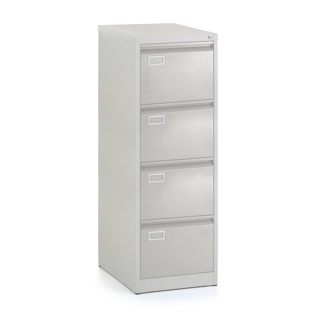 Kovová kartotéka A4 - 4 zásuvky, 45,5 x 62 x 132 cm, cylindrický zámek, světle šedá - ral 7035