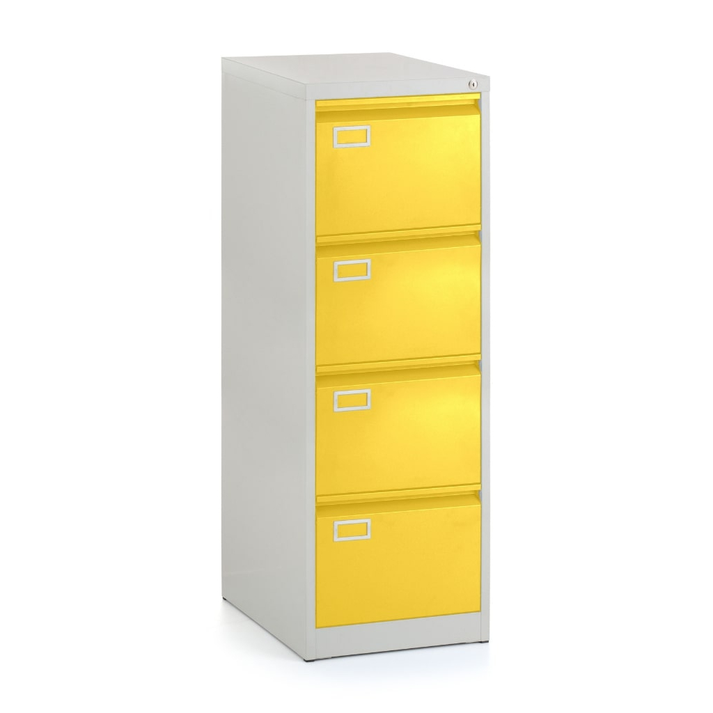 Kovová kartotéka A4 - 4 zásuvky, 45,5 x 62 x 132 cm, cylindrický zámek, žlutá - ral 1023