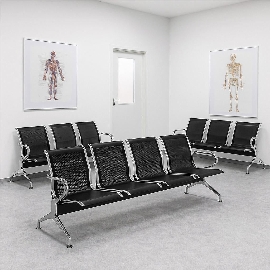 Kovová lavice do čekárny REST, 4-sedák, černá