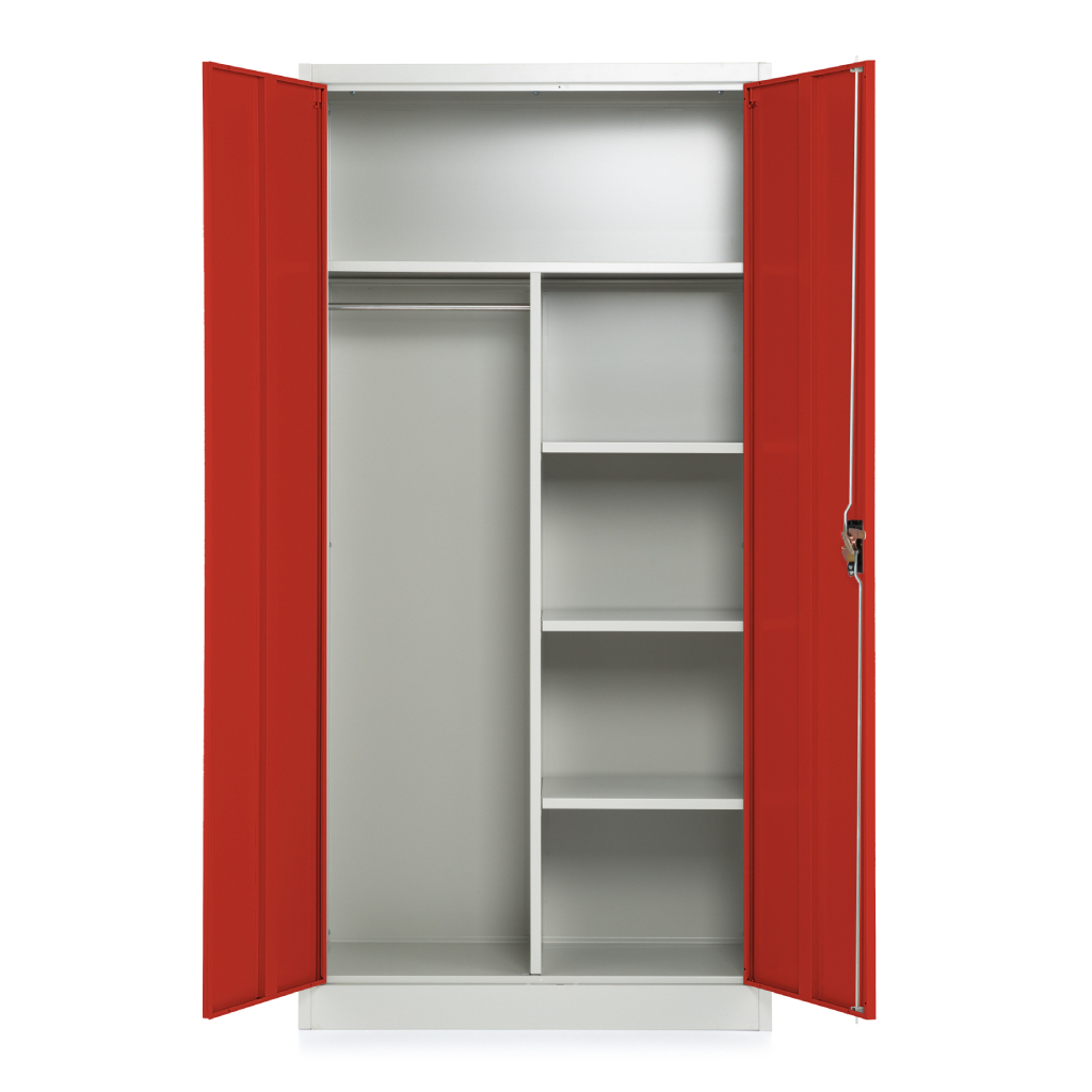 Kovová šatní skříň, 90 x 45 x 185 cm, cylindrický zámek, červená - ral 3000