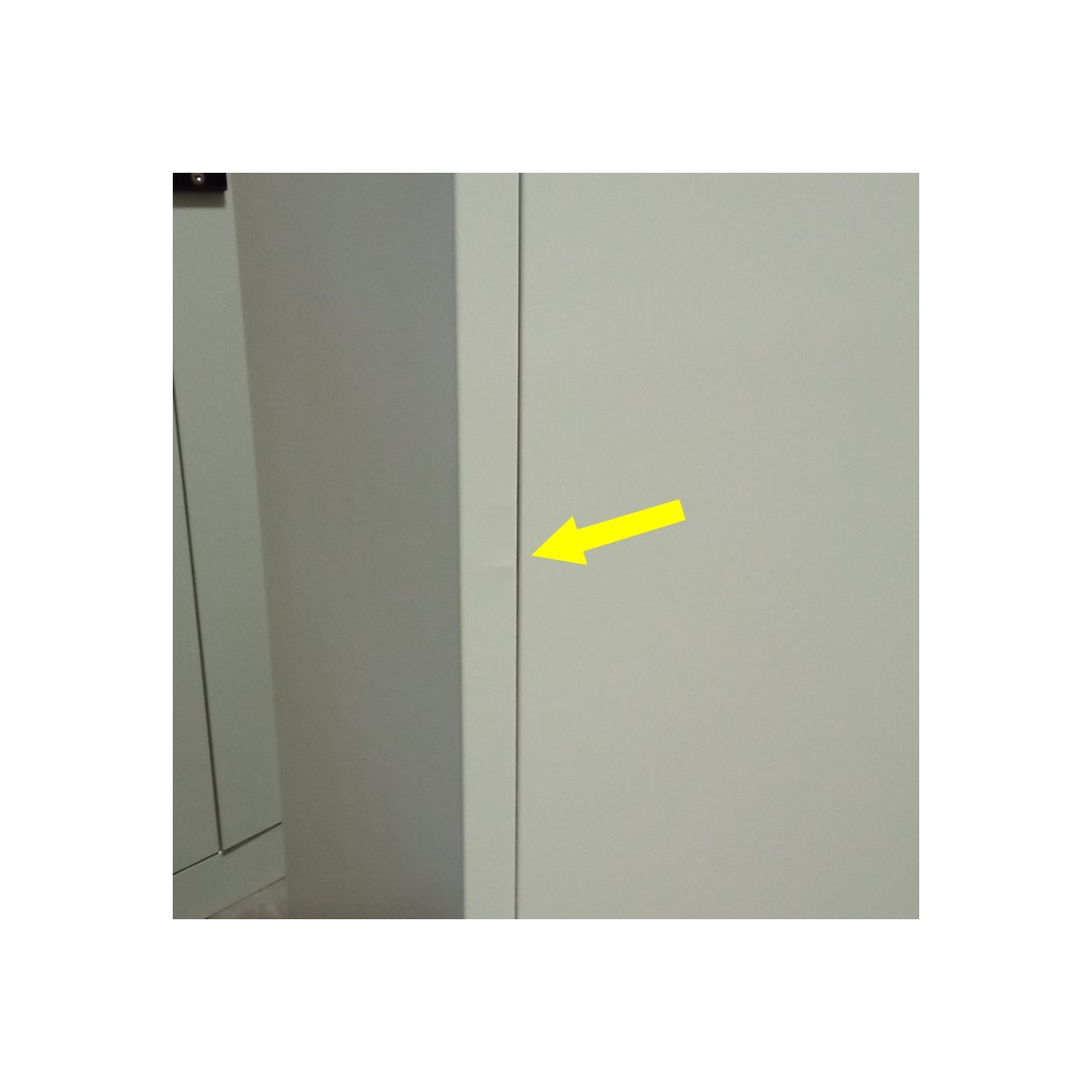 Boky skříně jsou zepředu zdeformované (viz fotogalerie), na funkčnost produktu to nemá vliv.