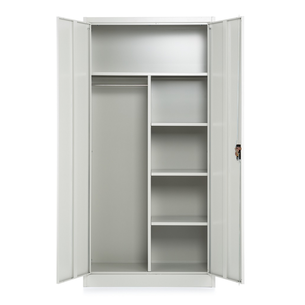 Vybavte si svou kancelář kovovou šatní skříní, která nabídne spoustu úložného prostoru. A to nejen pro vaše oděvy. Kromě uložení oblečení ji totiž můžete využít také pro archivaci nejrůznějších dokumentů. Třeba ve formě složek nebo šanonů. Tato kombinovaná skříň s velkým množstvím polic vás jednoduše zbaví mnoha starostí.