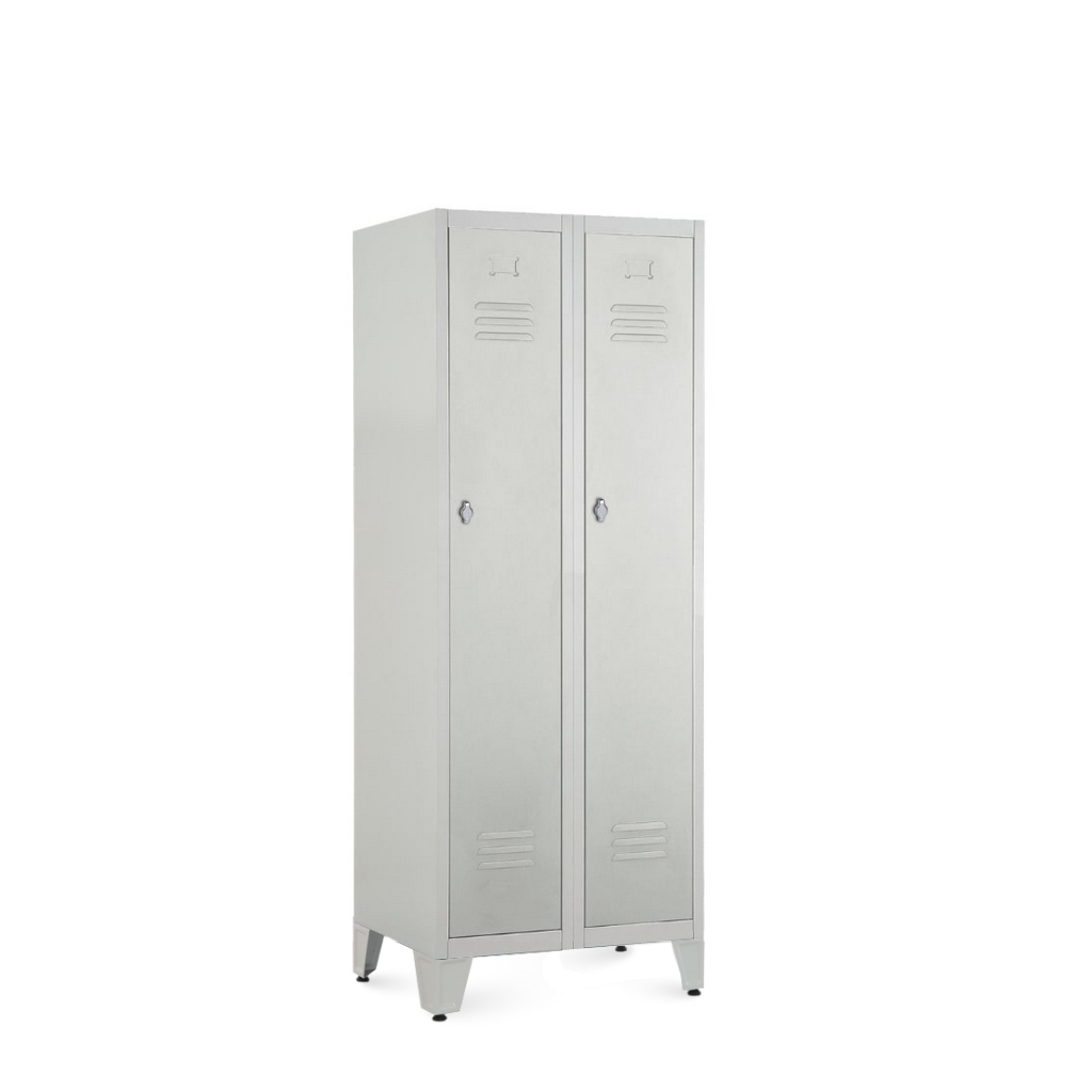 Kovová šatní dvojskříňka je pro hromadné převlékárny ideálním řešením. V prostoru se dá jednoduše připojit k jiným šatním skříním, a navíc vytvoří dostatek místa pro uložení nezbytných věcí.