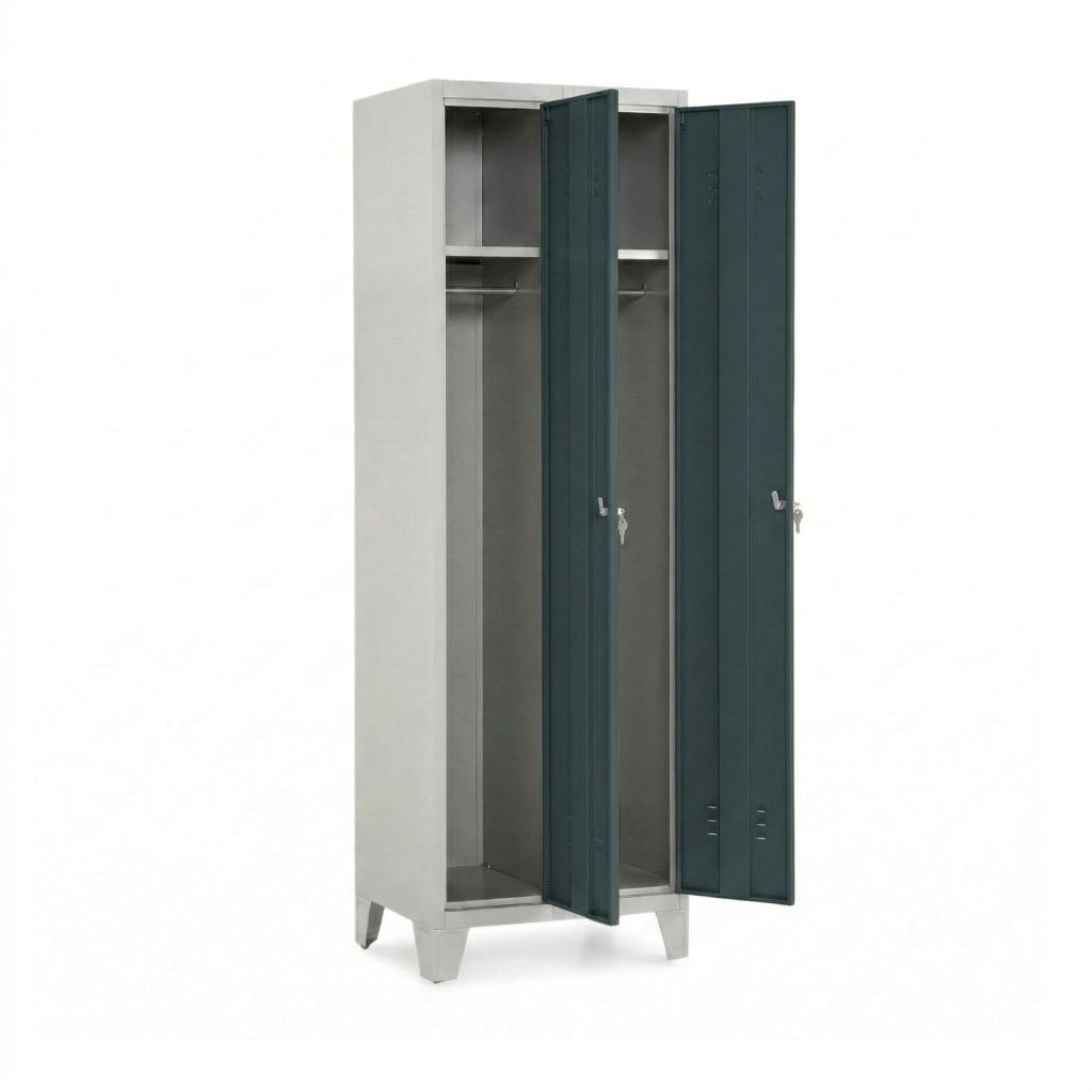 Kovová šatní dvojskříňka je pro hromadné převlékárny ideálním řešením. V prostoru se dá jednoduše připojit k jiným šatním skříňkám, a navíc vytvoří dostatek místa pro uložení nezbytných věcí.