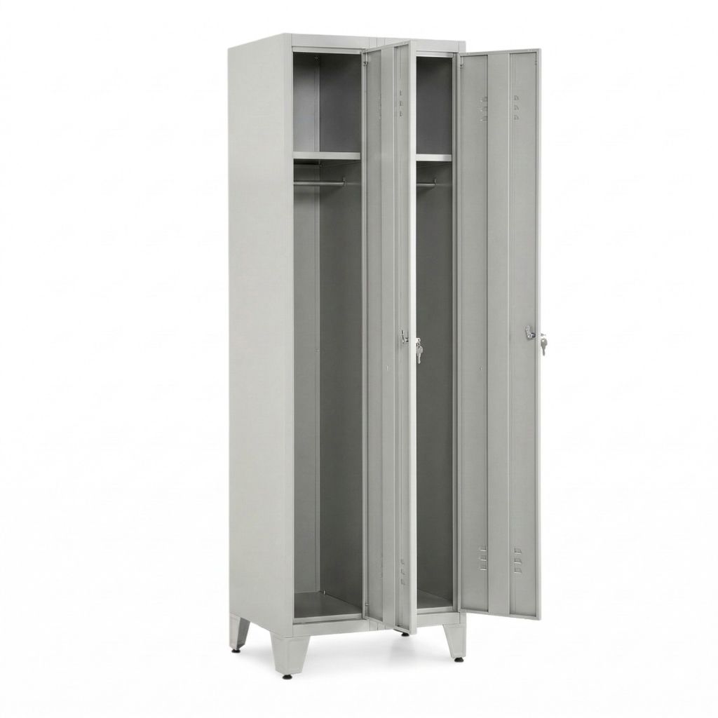 Kovová šatní dvojskříňka je pro hromadné převlékárny ideálním řešením. V prostoru se dá jednoduše připojit k jiným šatním skříňkám, a navíc vytvoří dostatek místa pro uložení nezbytných věcí.