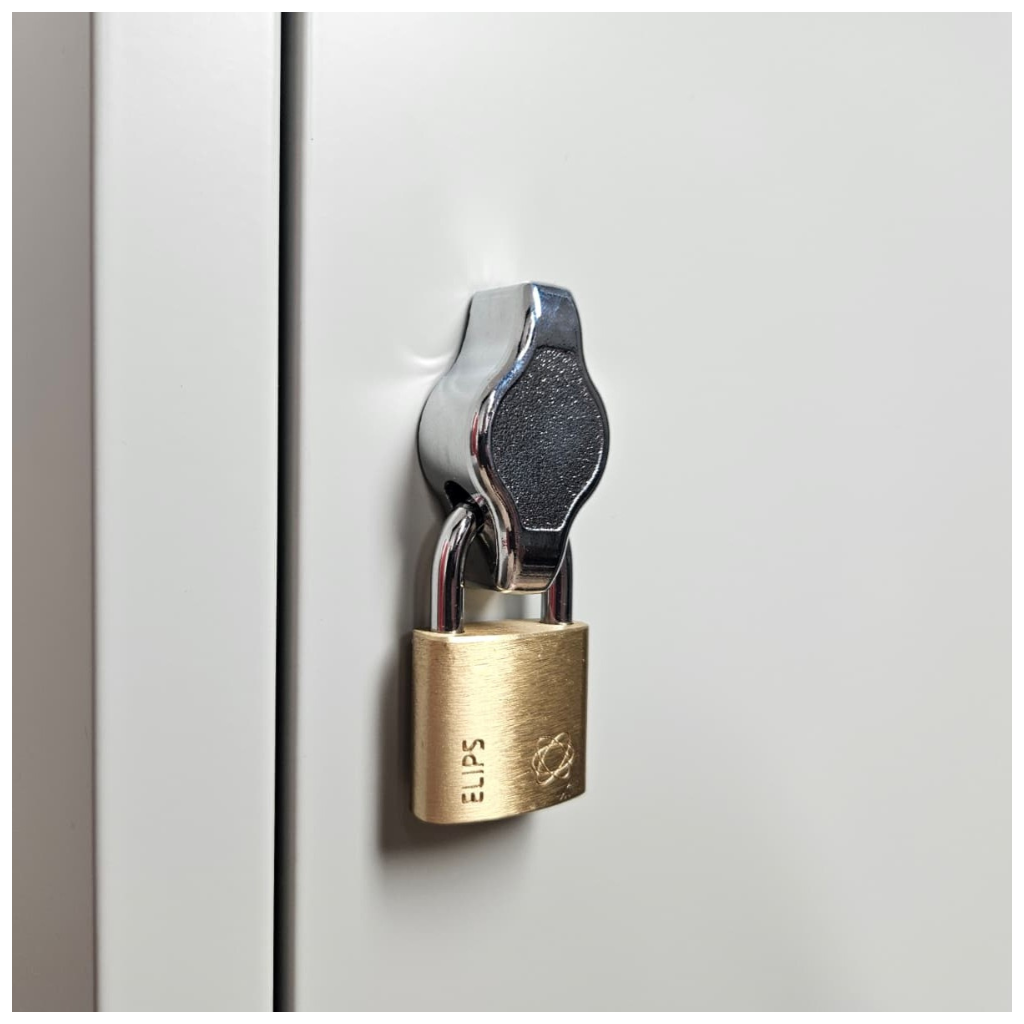 S boxovou šatní skříňkou se o bezpečí osobních věcí nebudete muset obávat. Veškerý obsah každého z boxu je totiž zabezpečený pomocí zámku. Otočné zámky dostanete zvlášť, montáž je však jednoduchá a zvládnete ji raz dva.