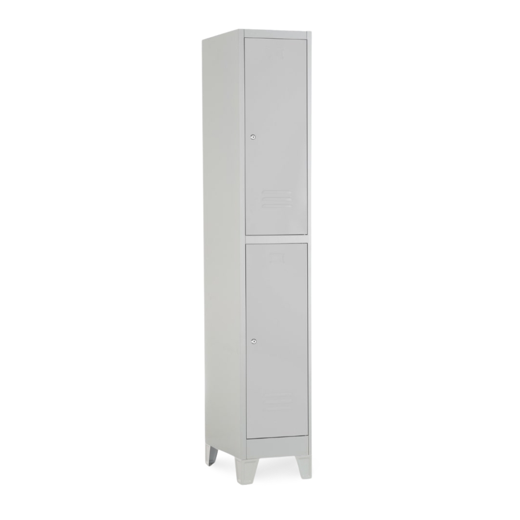 Kovová šatní skříňka disponuje 2 samostatnými boxy umístěnými na sobě. Každý z nich nabízí dostatek úložného prostoru pro osobní věci i oděvy.