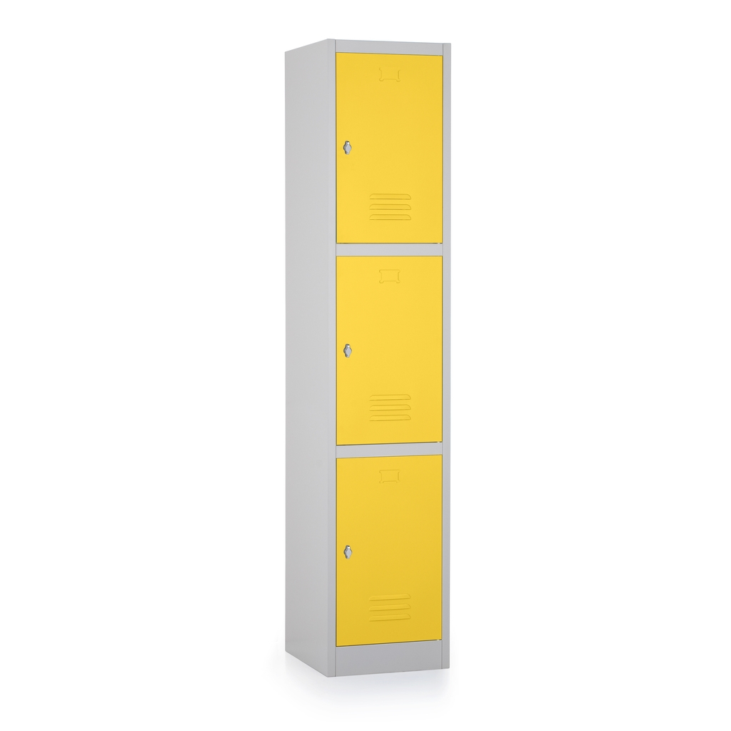 Kovová šatní skříňka - 3 boxy, 38 x 45 x 185 cm, otočný zámek, žlutá - ral 1023
