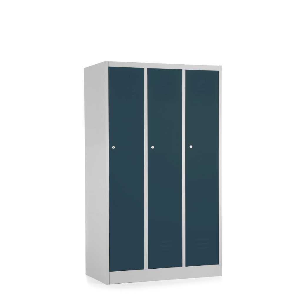 Kovová šatní trojskříňka je pro hromadné převlékárny ideálním řešením. V prostoru se dá jednoduše připojit k jiným šatním skříňkám, a navíc vytvoří dostatek místa pro uložení nezbytných věcí.
