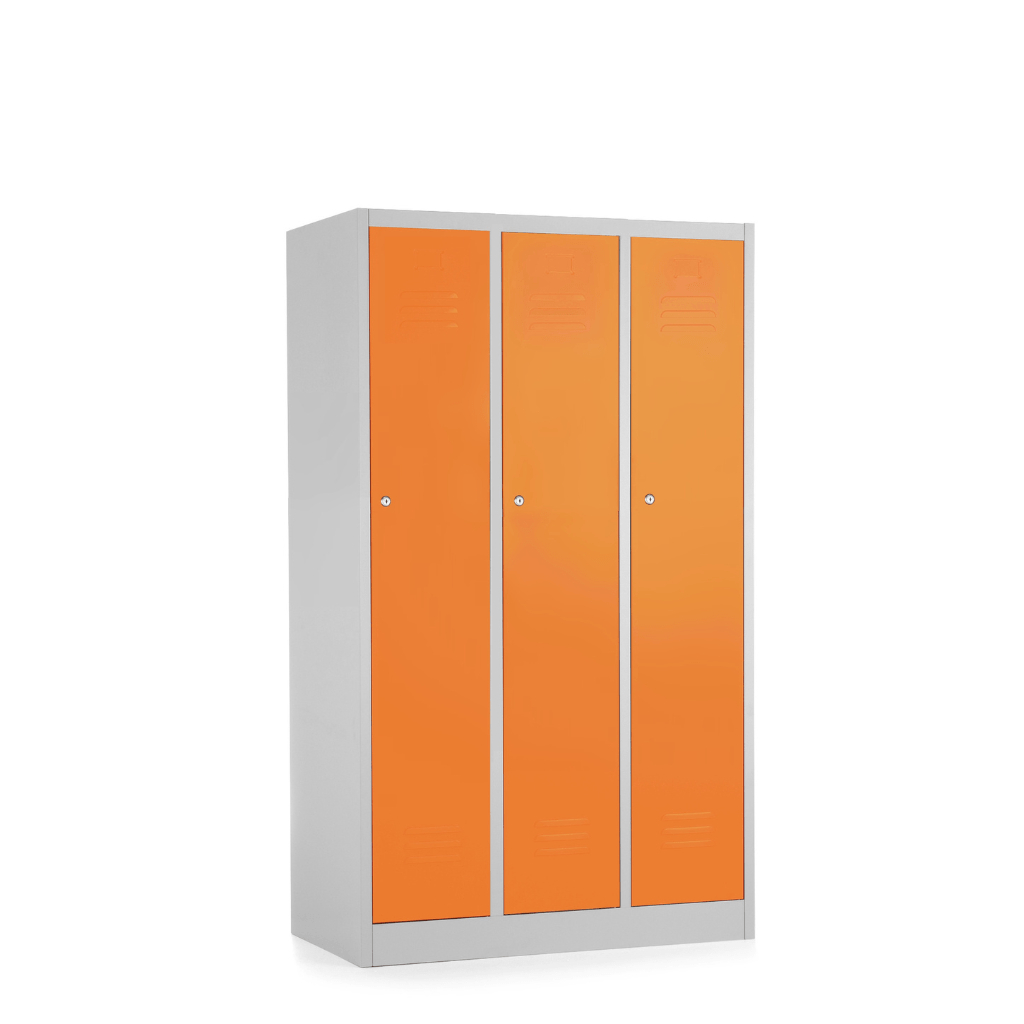Kovová šatní trojskříňka je pro hromadné převlékárny ideálním řešením. V prostoru se dá jednoduše připojit k jiným šatním skříňkám, a navíc vytvoří dostatek místa pro uložení nezbytných věcí.