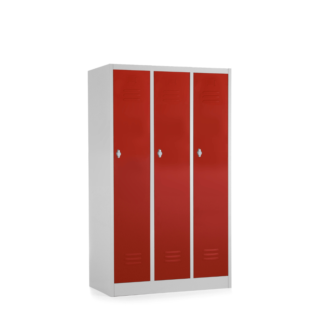 Kovová šatní trojskříňka je pro hromadné převlékárny ideálním řešením. V prostoru se dá jednoduše připojit k jiným šatním skříňkám, a navíc vytvoří dostatek místa pro uložení nezbytných věcí.