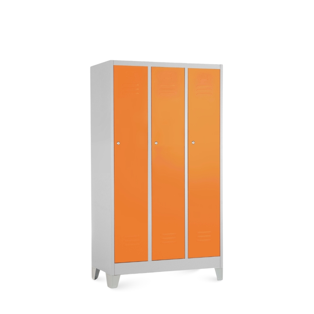 Kovová šatní trojskříňka je pro hromadné převlékárny ideálním řešením. V prostoru se dá jednoduše připojit k jiným šatním skříňkám, a navíc vytvoří dostatek místa pro uložení nezbytných věcí.