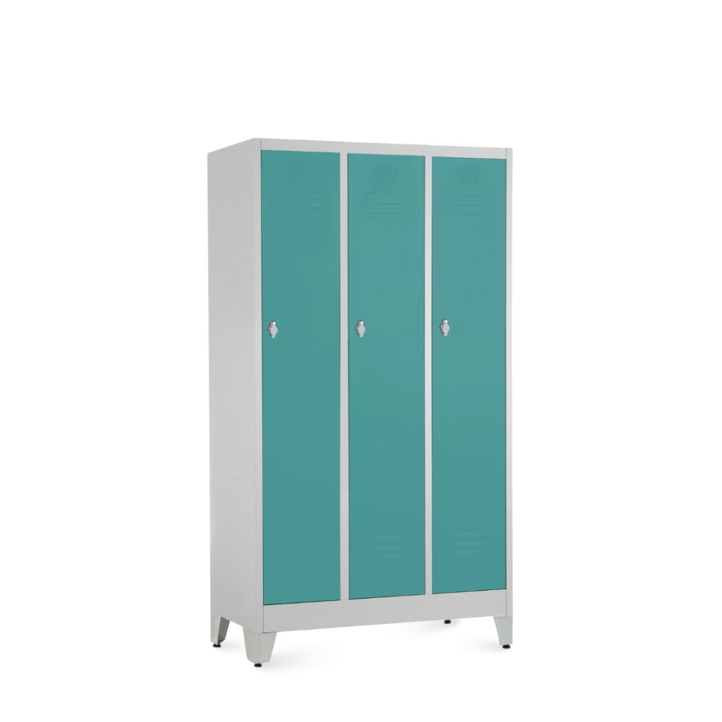 Kovová šatní trojskříňka je pro hromadné převlékárny ideálním řešením. V prostoru se dá jednoduše připojit k jiným šatním skříňkám, a navíc vytvoří dostatek místa pro uložení nezbytných věcí.