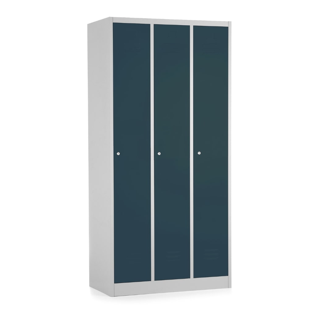 Kovová šatní trojskříňka je pro hromadné převlékárny ideálním řešením. V prostoru se dá jednoduše připojit k jiným šatním skříňkám, a navíc vytvoří dostatek místa pro uložení nezbytných věcí.
