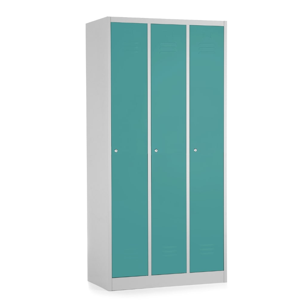Kovová šatní trojskříňka je pro hromadné převlékárny ideálním řešením. V prostoru se dá jednoduše připojit k jiným šatním skříňkám, a navíc vytvoří dostatek místa pro uložení nezbytných věcí.