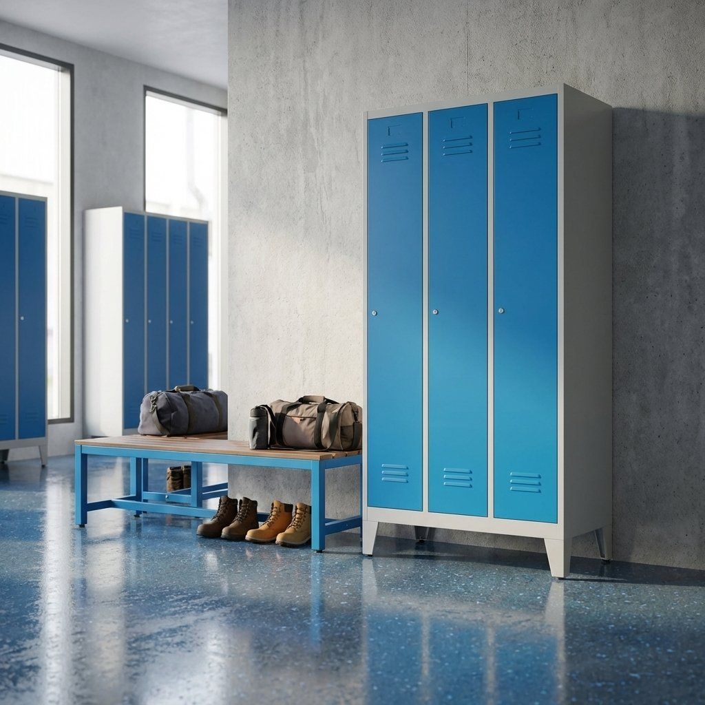 Kovová šatní trojskříňka je pro hromadné převlékárny ideálním řešením. V prostoru se dá jednoduše připojit k jiným šatním skříňkám, a navíc vytvoří dostatek místa pro uložení nezbytných věcí.