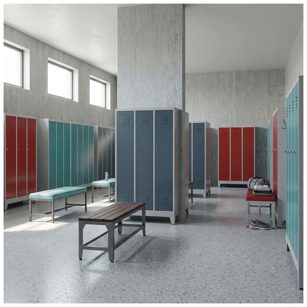 Kovová šatní trojskříňka je pro hromadné převlékárny ideálním řešením. V prostoru se dá jednoduše připojit k jiným šatním skříňkám, a navíc vytvoří dostatek místa pro uložení nezbytných věcí.
