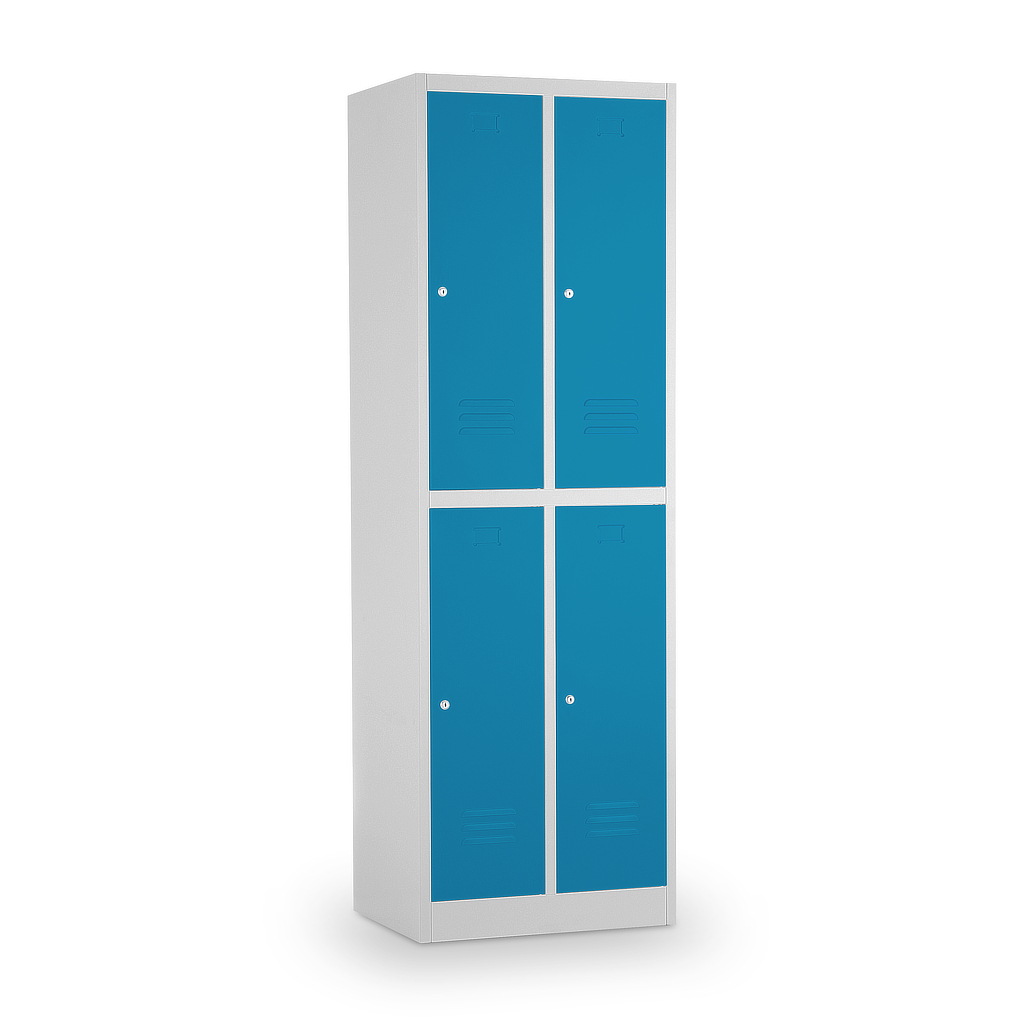 Kovová šatní skříňka - 4 boxy, 60 x 45 x 185 cm, cylindrický zámek, modrá - ral 5012