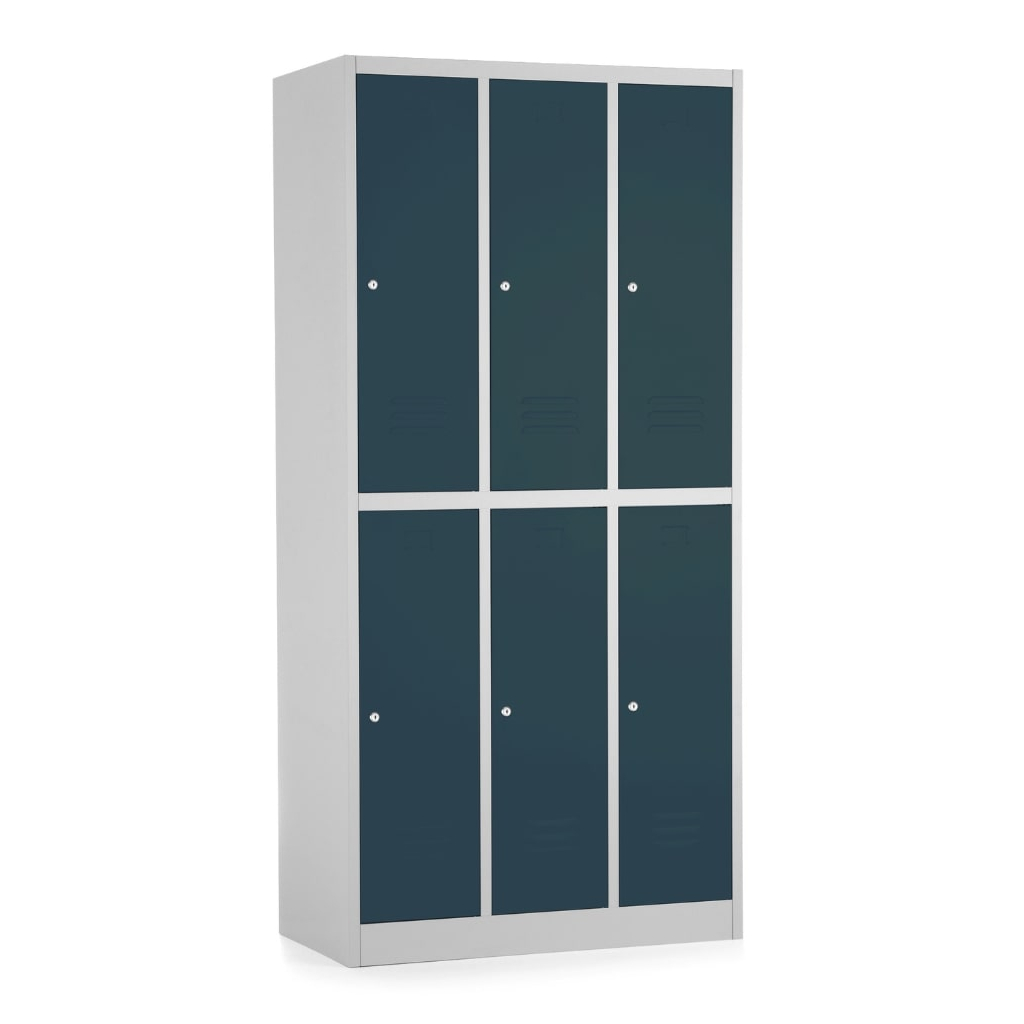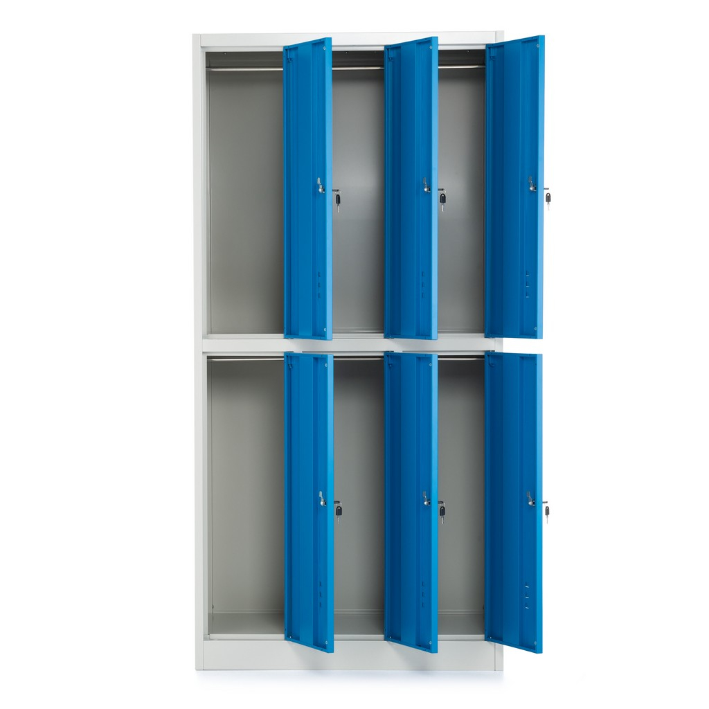 Kovová šatní skříňka s 6 boxy je pro hromadné převlékárny ideálním řešením. V prostoru se dá jednoduše připojit k jiným šatním skříňkám, a navíc vytvoří dostatek místa pro uložení nezbytných věcí.