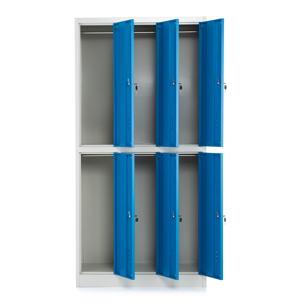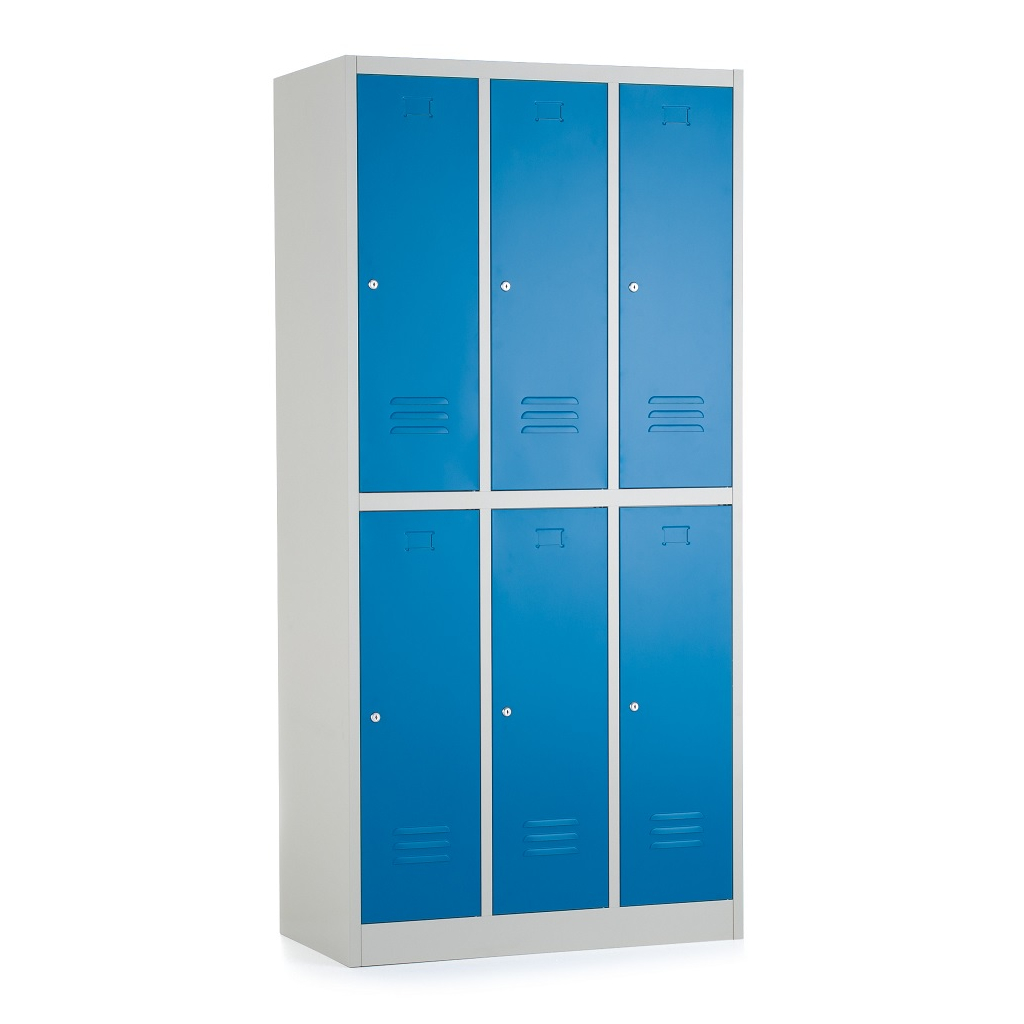 Kovová šatní skříňka s 6 boxy je pro hromadné převlékárny ideálním řešením. V prostoru se dá jednoduše připojit k jiným šatním skříňkám, a navíc vytvoří dostatek místa pro uložení nezbytných věcí.