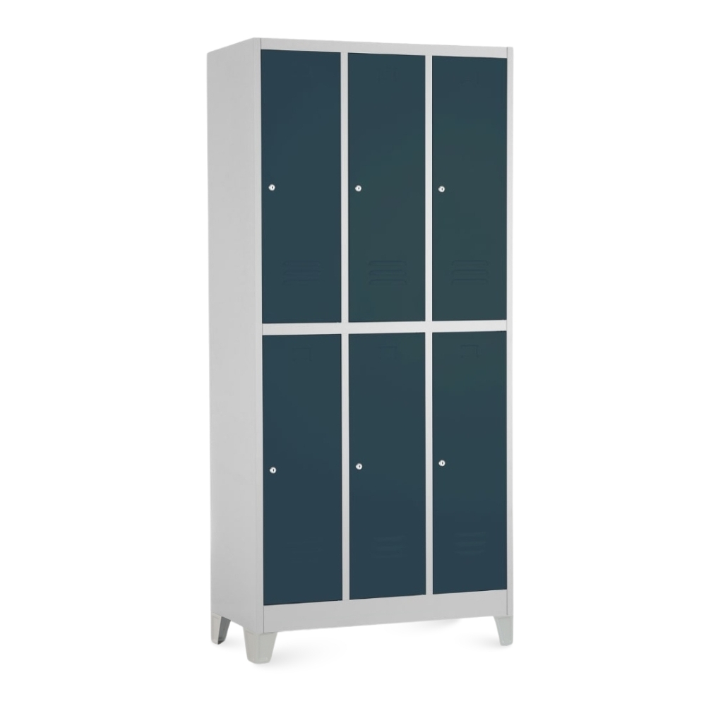 Kovová šatní skříňka s 6 boxy je pro hromadné převlékárny ideálním řešením. V prostoru se dá jednoduše připojit k jiným šatním skříňkám, a navíc vytvoří dostatek místa pro uložení nezbytných věcí.