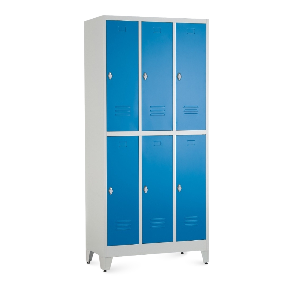 Kovová šatní skříňka s 6 boxy je pro hromadné převlékárny ideálním řešením. V prostoru se dá jednoduše připojit k jiným šatním skříním, a navíc vytvoří dostatek místa pro uložení nezbytných věcí.