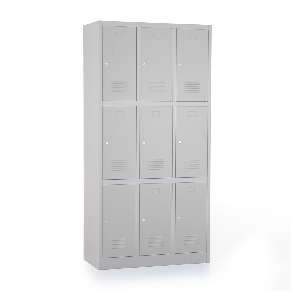 Kovová šatní skříňka - 9 boxů, 90 x 45 x 185 cm, cylindrický zámek, šedá - ral 7035