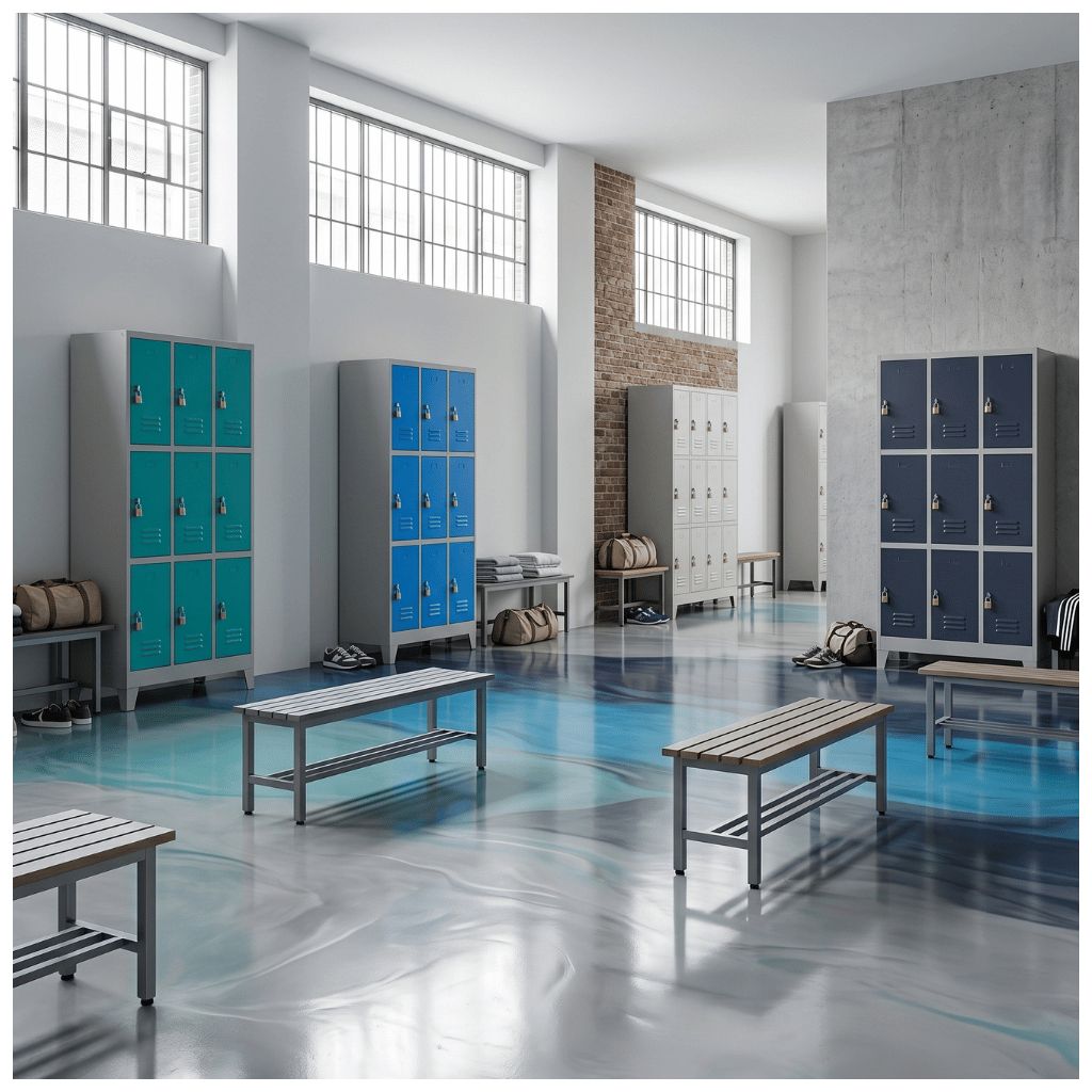 Kovová šatní skříňka disponuje 9 samostatnými boxy v rozložení 3 × 3. Každý z nich nabízí dostatek úložného prostoru pro osobní věci i oděvy.