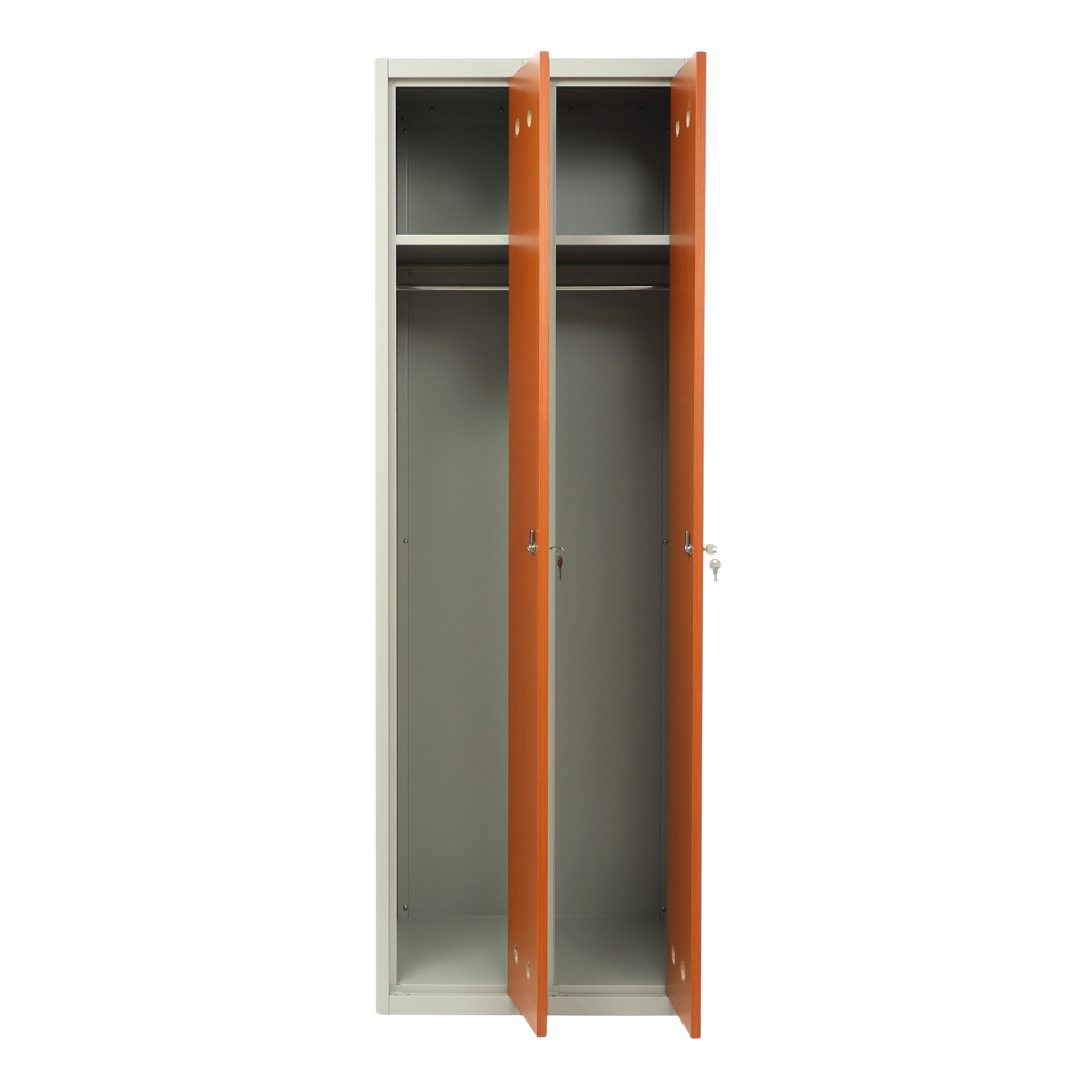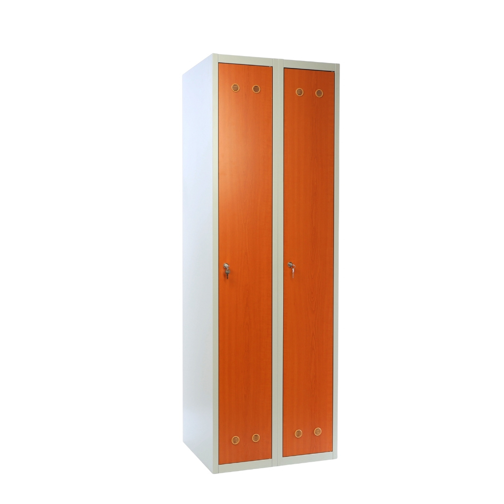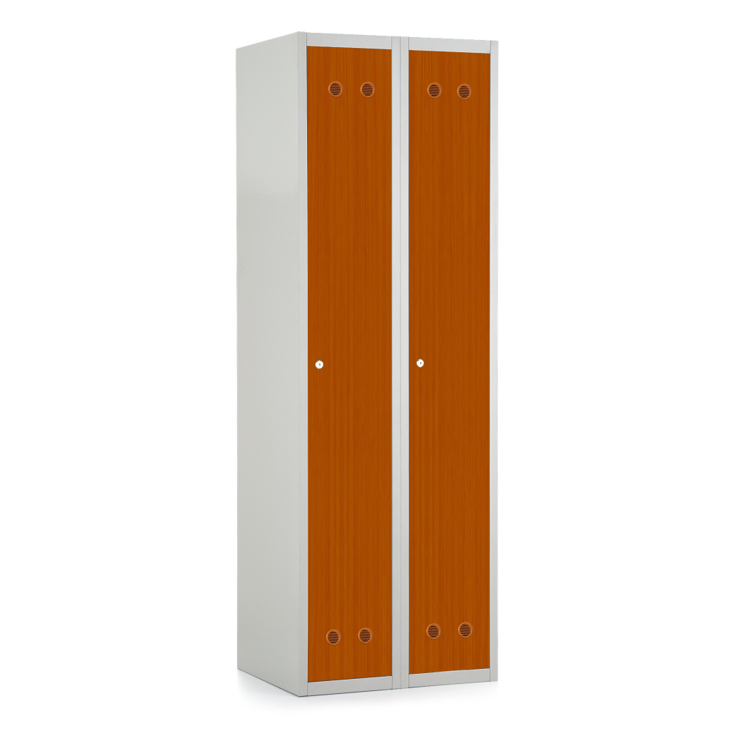 Kovová šatní skříňka s dřevěnými dveřmi, 60 x 50 x 180 cm, cylindrický zámek, třešeň