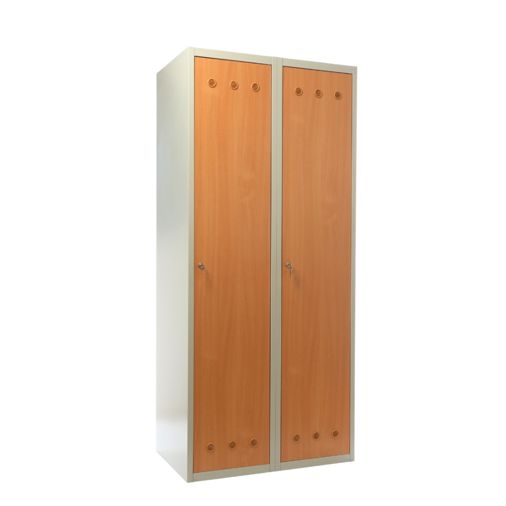 Kovová šatní skříňka s dřevěnými dveřmi, 80 x 50 x 180 cm, cylindrický zámek, buk