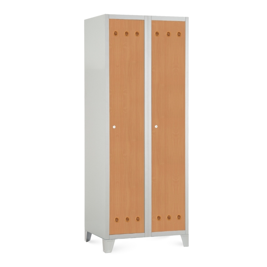 Kovová šatní skříňka s dřevěnými dveřmi, 80 x 50 x 190 cm, pevné nohy, cylindrický zámek, buk