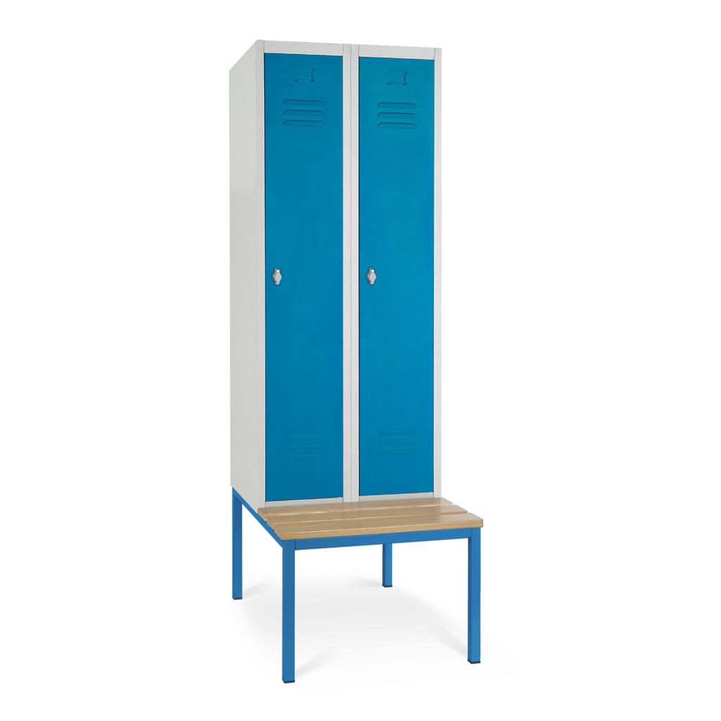 Kovová šatní skříňka s lavičkou, 60 x 85 x 185 cm, otočný zámek, modrá - RAL 5012